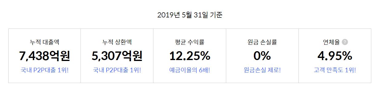 홈페이지에서 확인할 수 있듯이, 7438억에 달하는 자금을 운용하고 있다고 한다. 연체율도 5퍼센트 가량으로 낮은 편이다.